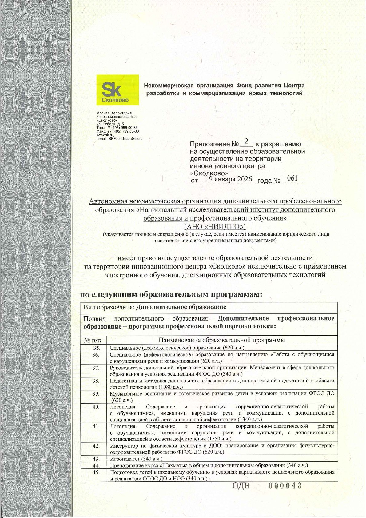 Лицензия на осуществление образовательной деятельности № Л035-01298-77/00180468