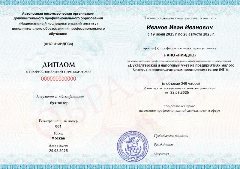 Выдаваемый документ: Диплом о профессиональной переподготовке