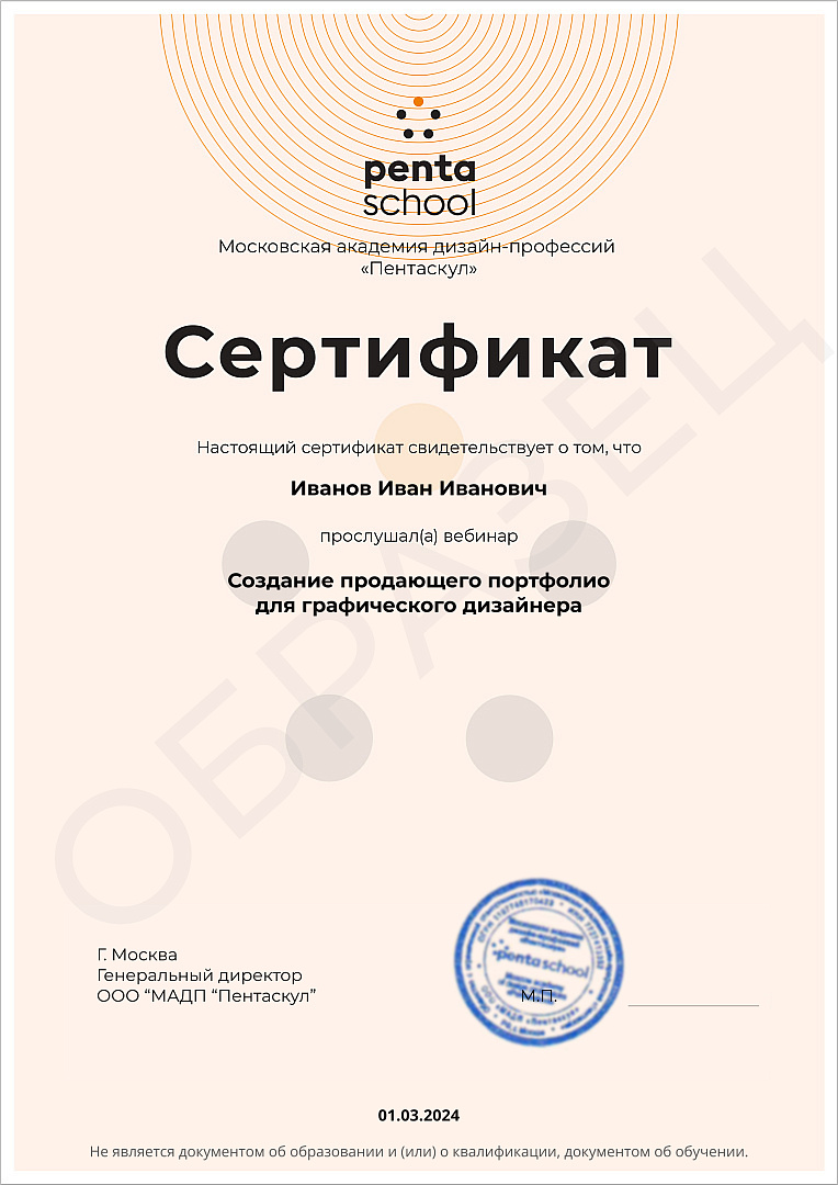 Сертификаты за посещенные онлайн-вебинарыУчаствуйте в регулярных вебинарах по дизайну и получайте дополнительные документы, которые могут учитываться при трудоустройстве