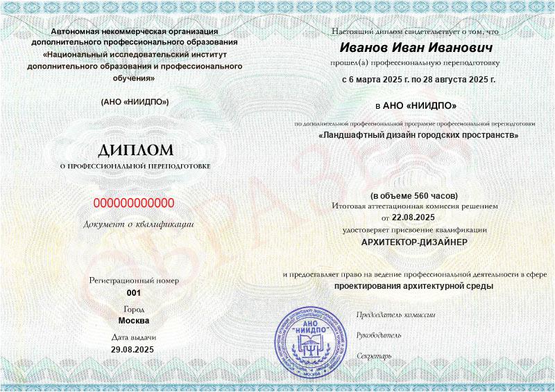 Учебный план программы профессиональной переподготовки «Ландшафтный дизайн городских пространств» с присвоением квалификации «Архитектор-дизайнер»