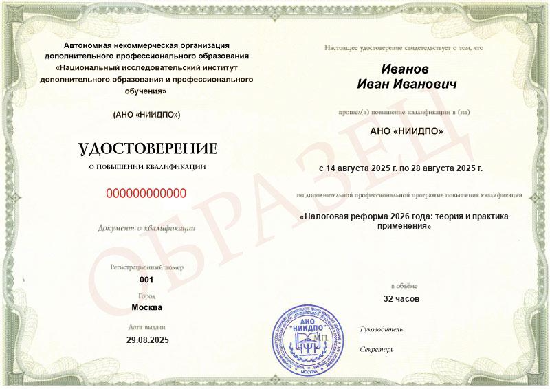 Налоговая реформа 2026 года: теория и практика применения (32ч)