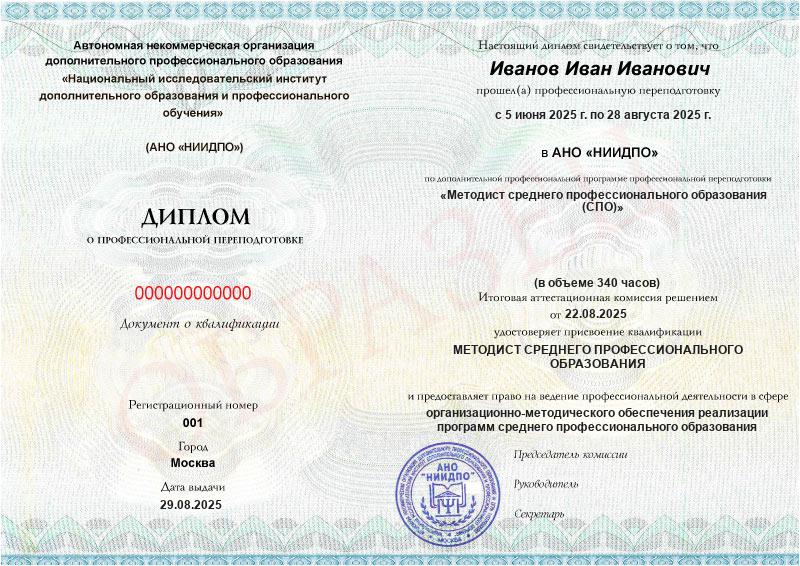 Да, выданный АНО «НИИДПО» диплом предоставляет вам право на ведение профессиональной деятельности в соответствии с квалификацией.