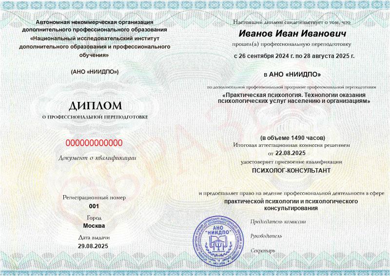 Да, выданный АНО «НИИДПО» диплом предоставляет вам право на ведение профессиональной деятельности в соответствии с квалификацией.