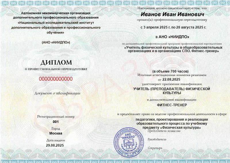 Учитель физической культуры в общеобразовательных организациях и в организациях СПО. Фитнес-тренер (700ч)